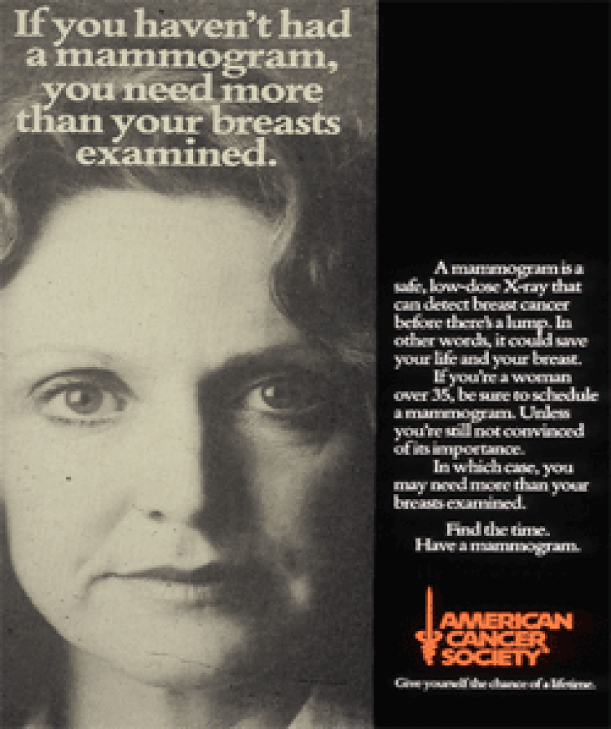 Dr. Steve Woloshin, a professor of the Dartmouth Institute for Health Policy and Clinical Practice, remembers one American Cancer Society ad from three decades ago that stated “If you’re a woman over 35 and you haven’t had a mammogram you need more than your breasts examined.”