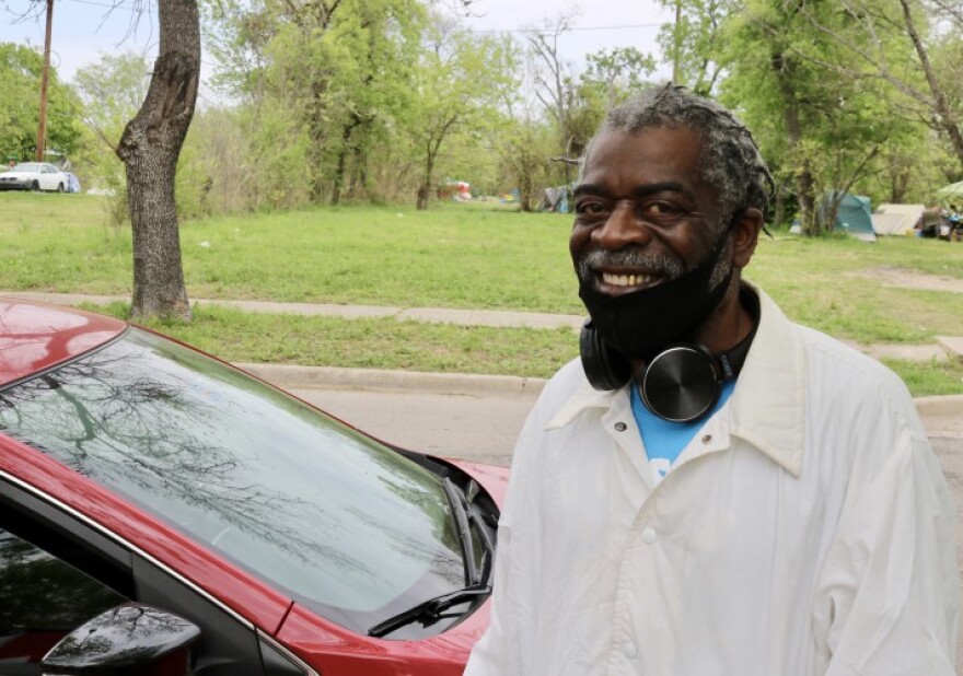Jhonny Lee lives at camp Rhonda and is working with Dallas Houseless Committee to access his funds.