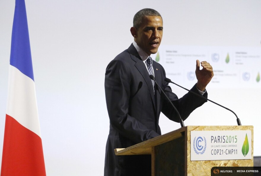 Obama spoke Tuesday as he ended a two-day trip to Paris for a United Nations conference on climate. He was among dozens of leaders who descended on the city to kick off the final weeks of talks on an international agreement to reduce global carbon emissions